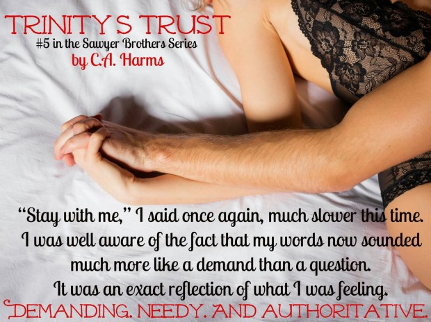 Trinity’s Trust, is a sexy, fast paced romance. It’s captivating and RIDICULOUSLY HOT balanced perfectly with touching moments of heartache and pain, while full of love. Can someone say SWOON? Because that’s what you’ll do. MANY TIMES! Annnnnd it has a KILLER epilogue that fans of the series will ADORE!