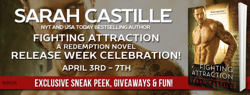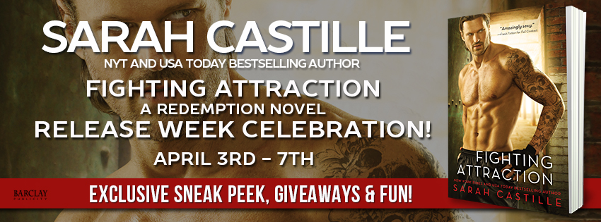 Snag your copy of FIGHTING ATTRACTION or add it to your TBR pile on Goodreads! Then keep reading to get a sexy peek inside FIGHTING ATTRACTION and to enter the giveaway for the first three books in the Redemption series!